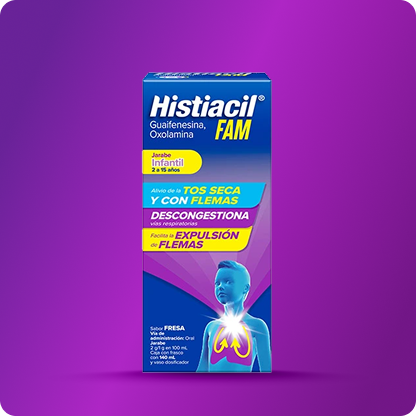 Así que, si tienes tos y congestión nasal, prueba Histiacil, descongestiona, expulsa las flemas y alivia la tos.5